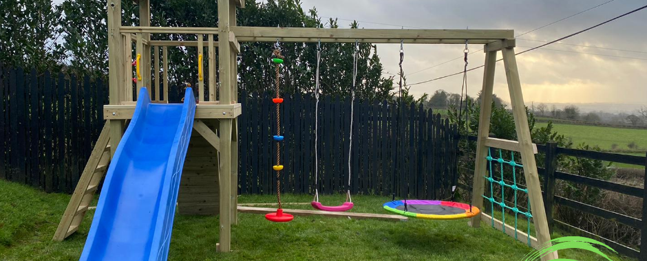Ladder, Rockwall, Rope Ladder, Monkey Bars, Cargo Rope ladder on A frame, Picnic Table, Sandpit, Sheeted Underneath With Window And Door.