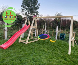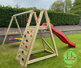 Ladder, Rockwall, Monkey Bars, Cargo Rope ladder on A Frame.