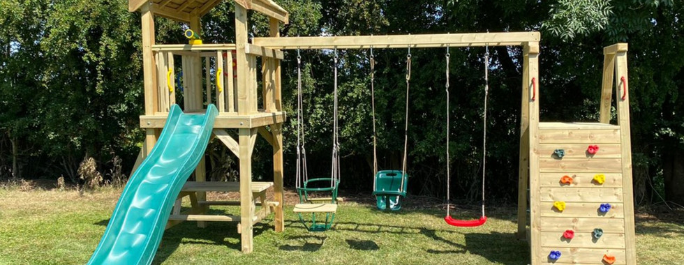 10ft Wave Slide, Tube Slide, Standard Swing, Baby swing, Trapeze, Disc Climbing rope, Nest swing, Disc swing, telescope, Steering Wheel, Binoculars, Firemans pole.